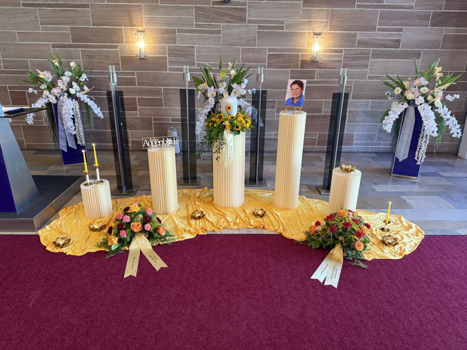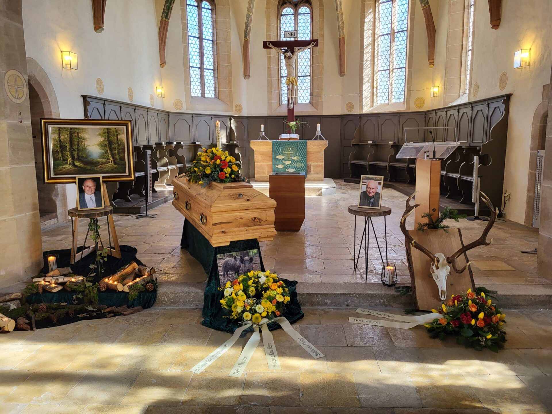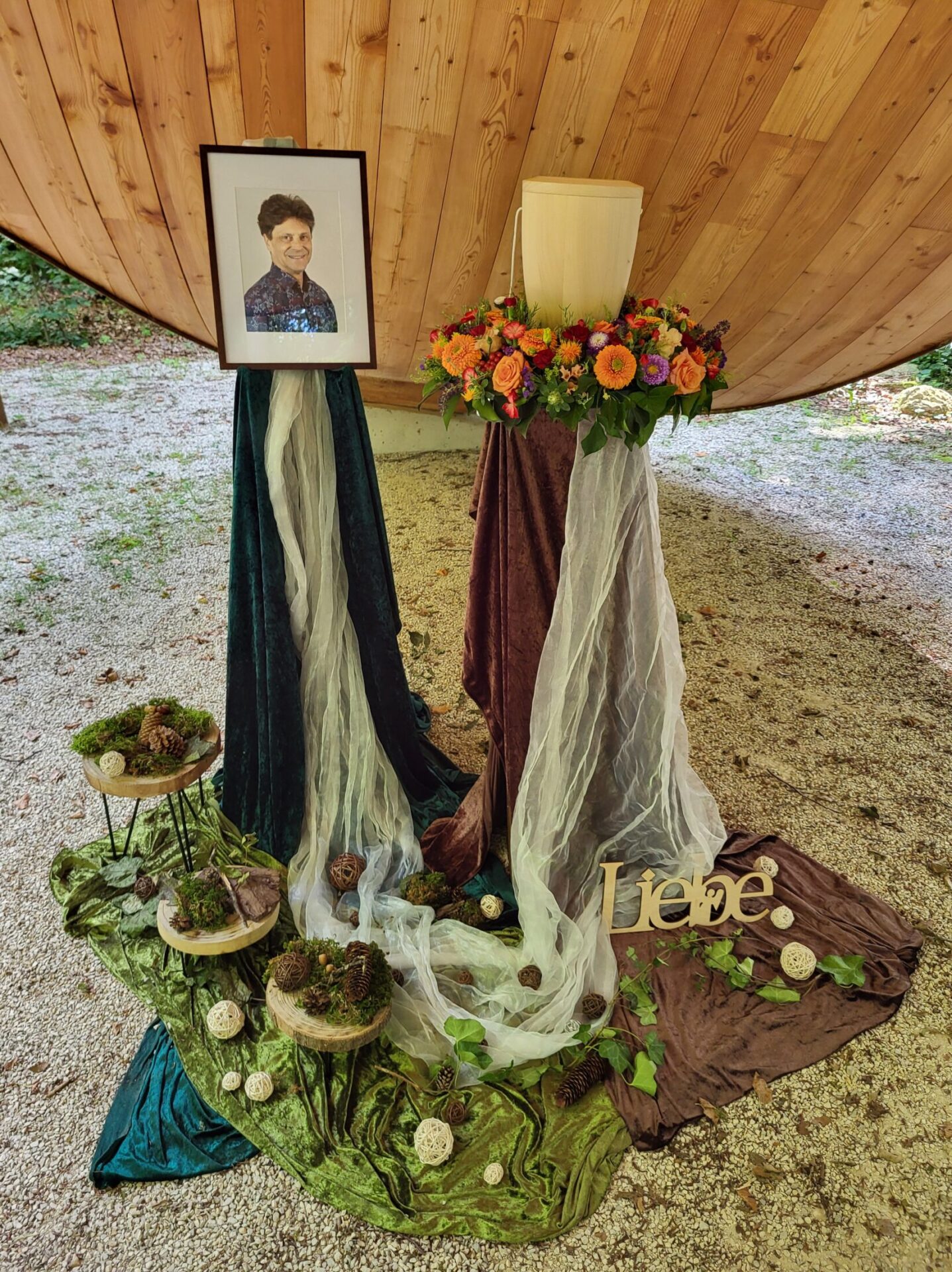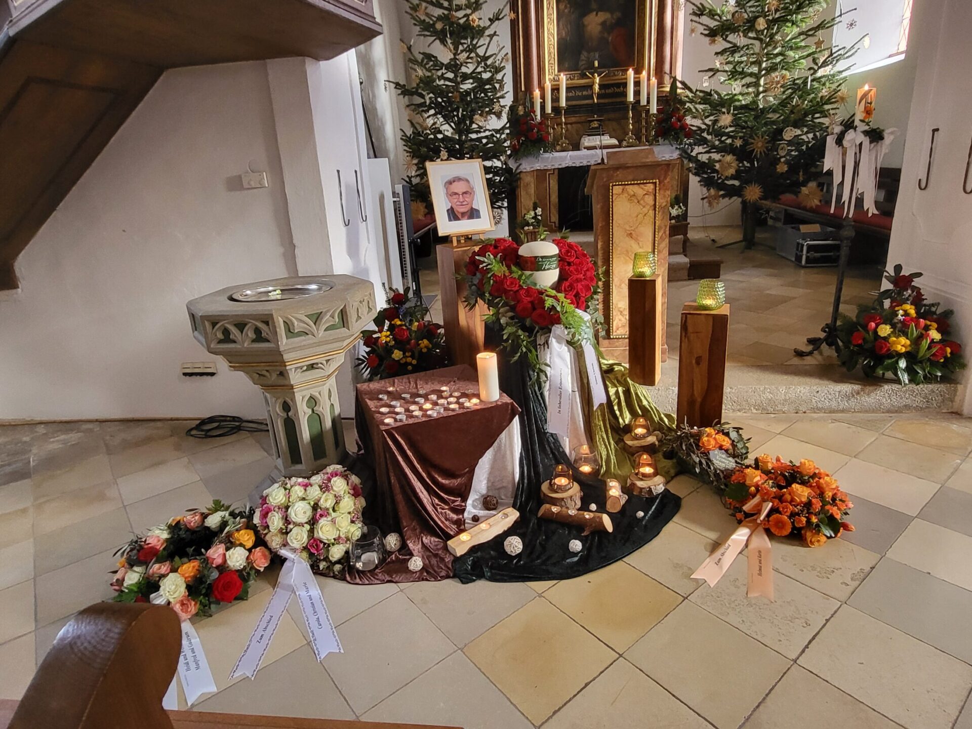 Eine Trauerfeier kann an verschiedenen Stellen stattfinden: In einer Kirche, auf einem Friedhof begleitend zu einer Bestattung dort im Freien oder in einer Friedhofskapelle, in einer gemeindlichen oder privaten Trauerhalle, als auch von der Beisetzung getrennt im Garten eines Privathauses oder entsprechend großzügigen Räumlichkeiten. Wir ermöglichen eine individuelle Gestaltung der Trauerfeier.